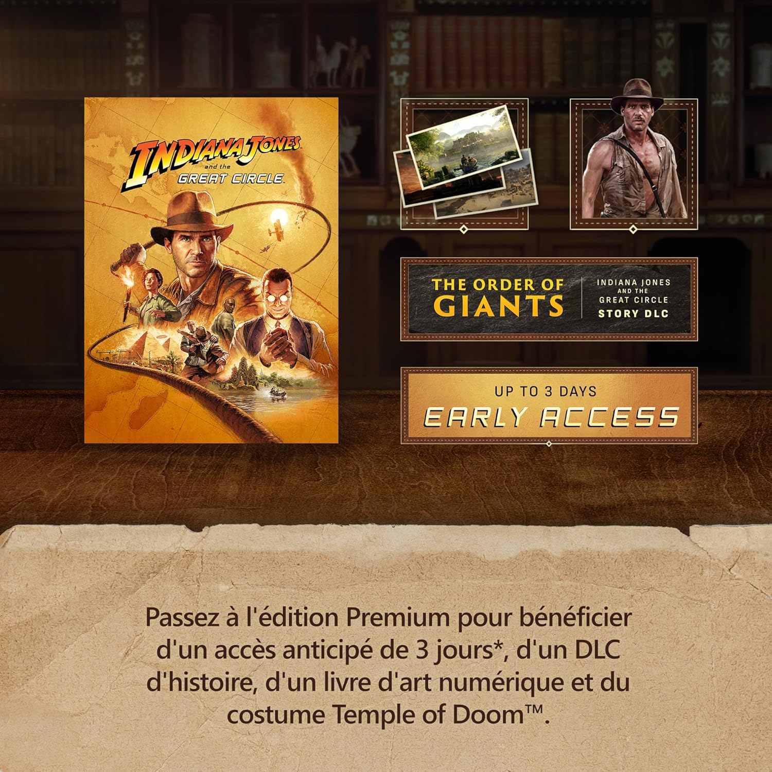 Live the adventure with the Premium Edition, including up to 3-day early access* and Indiana Jones and the Great Circle: The Order of Giants Story DLC (upon release).